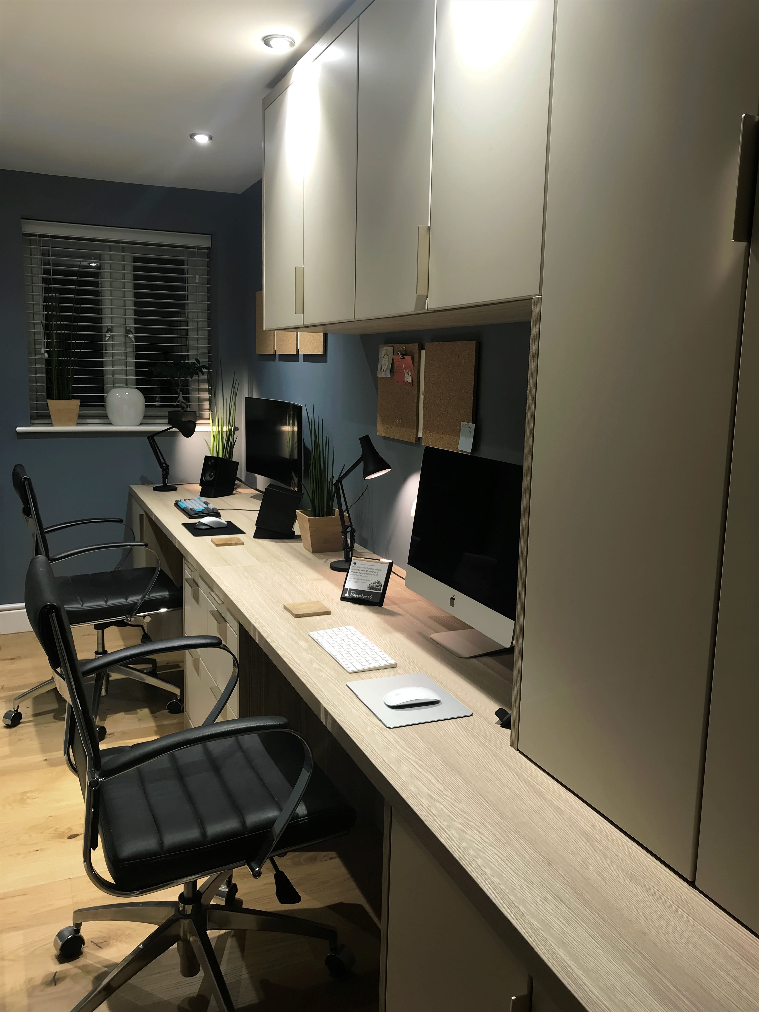I've tried to create a relaxing environment for both work and play by ensuring that I only have the essentials on my desk. Mood is set/enhanced with the lighting which can create a very relaxing space to be in. Having things organised and tidy also creates a sense of calm which helps me to concentrate, particularly when working from home. The fitted office is equipped with a lot of storage which makes keeping everything in order very easy. Any mess is always tidied up each evening to ensure that I get off to a good start the following day. Everything which has been included has been carefully selected from a design and aesthetic perspective and I try to follow themes using colours and shapes. It's also nice to have some greenery around. The view from the window is also fantastic (I'm in the countryside) and is very relaxing; it's good to reconnect with the real world by simply looking outside.